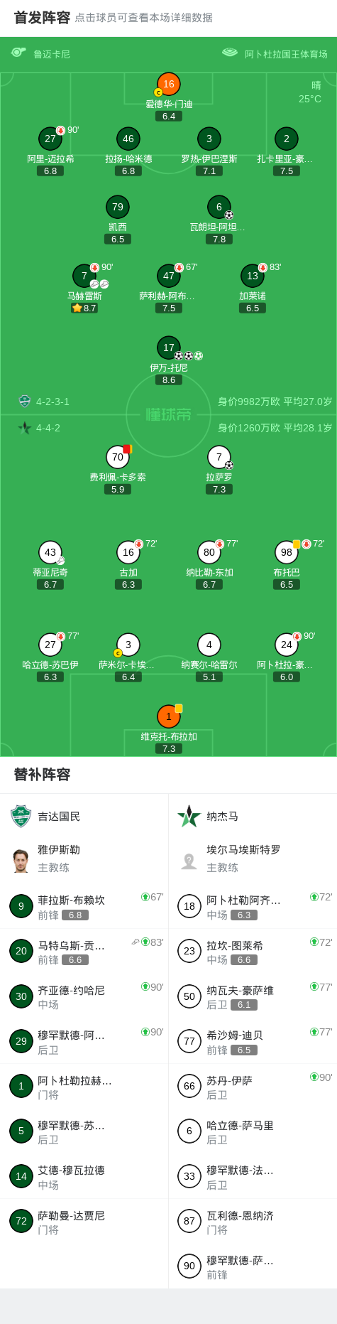 第27分钟,纳杰马球员蒂亚尼奇助攻拉萨罗打入一球。